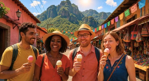 Para el postre, prueba las famosas tepoznieves con sabores exóticos como pétalos de rosa, aguacate o mezcal. Todo esto se encuentra a precios accesibles, lo que convierte a Tepoztlán en un lugar barato para comer delicioso sin sacrificar calidad.